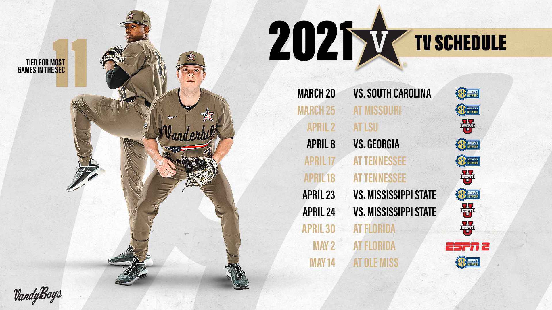 Vanderbilt Baseball On Twitter Tv Schedule Is Set 11 Nationally Televised Games This Season Vandyboys Anchordown
