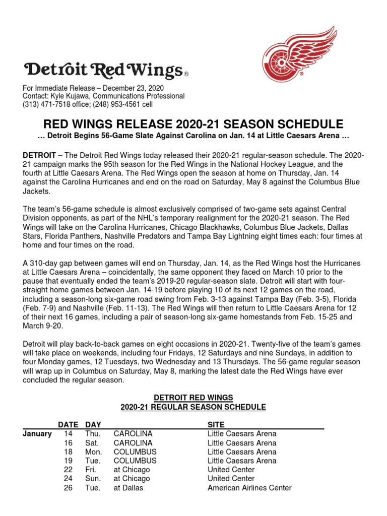 2020 21 Detroit Red Wings Schedule Pdf Detroit Red Wings Sports Teams